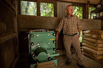 「蜜蜂の飼い方も時代に合った飼い方があるんですよ。将来を読んで先へ先へとやっていかんと、時代に置いていかれるようになってきた。それに追い打ちを掛けるようにコロナ禍。それで、昨日、人工花粉を作る機械を買うてきた。これからは温暖化が進んで、日本には四季があったけど、これから二季になって、フクラシやクリの蜜が入りよったのが……、その夏蜜が入らんようになった。わしらが若い時分は、朝と夕との気温差がありよったけど、今は夜が温(ぬく)すぎる。ナツメが蜜を噴かんようになった。以前は、分封したんじゃないかと思うほどに蜜蜂が寄って来よったんですよ。それが今年は一匹も来ん。6月に採密を終えたら女王さん作りに入ったんですよ。韓国では寒いのに一所懸命で蜂を育てる。韓国では真空土練機という粘土を練る機械で花粉を作りよる。それで、わしが100万円で真空土練機を買うたんじゃ。あれで花粉を作って日本の蜂屋が蜂を増やさないかん。