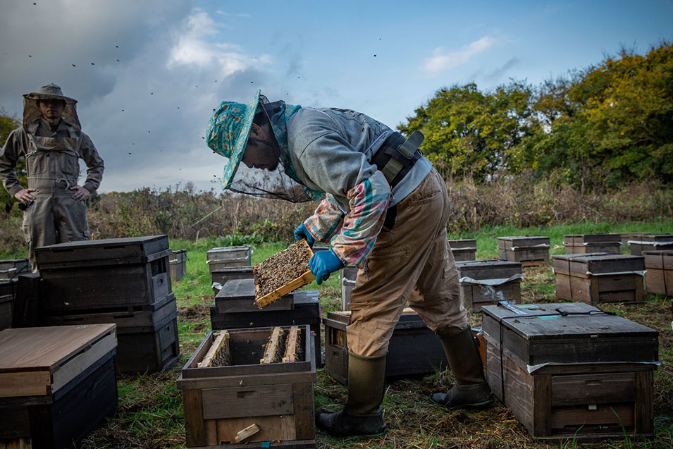 翌日、約束の午後1時過ぎ、バイパス沿いのうどん屋には、野々山養蜂園養蜂部部長の木下友和(きのした ともかず)さん(51)と栃木県塩屋町の養蜂家・小野田裕一(おのだ ゆういち)さん(38)が野々山さんのトラックを待ち受けていた。野々山さんのトラックには積み込みを手伝った畠山さんも同乗して埼玉県まで一緒に来ている。