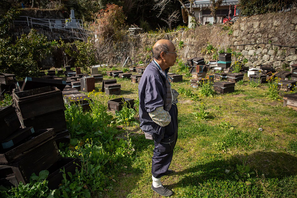「クマバチじゃった。ブーンと飛んできて、毒液を散らしたんじゃ思うけど……、痛うはないけどイガイガすると言いよったけど……。間に合わんかったね、病院に。20分ばいくらいで(アドレナリンの)注射を打たないかんのよ。檮原(ゆすはら・町)へ行けと言いよったんじゃけど、息子が須崎(市)へ行くと言うけん、間に合わんぞと言いよったんじゃけど……。女は体質が変わるね。ずーっと一緒に蜂の仕事をしよったんじゃけど……。もう7回忌が済んだき、8年ばい前よね」