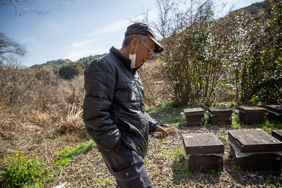 南国土佐といえども冷たい風の吹く日に巣箱の蓋を開けなければならないという藤岡さんにとっては気が乗らない取材となった。取材期間中、何度か藤岡さんが口にされていた「蜂が変わってきとるんよ」や「自然が変わりよるんじゃろ」と言う言葉の背景に、蜜蜂を50余年間も飼い、培ってきた養蜂技術や自然観察力の自負が揺らいでいるのを感じた。その上、妻と長男を亡くされ後継者の目処が立たないまま蜂場を維持することの精神的な負担はいかばかりかと思い至る。蜂の継続的な管理の手を抜くことはできない。励ます手立ては思い付かないが、せめてもの救いは藤岡さんが「蜂を飼うてみたかったのよね」と言っていたように、今では蜜蜂の存在そのものが根っから蜂好きの藤岡さんを励ましてくれているのではと思えることだ。やがて流蜜の季節がやってきて蜜蜂が活発になれば藤岡さんも元気を取り戻してくれることだろう。