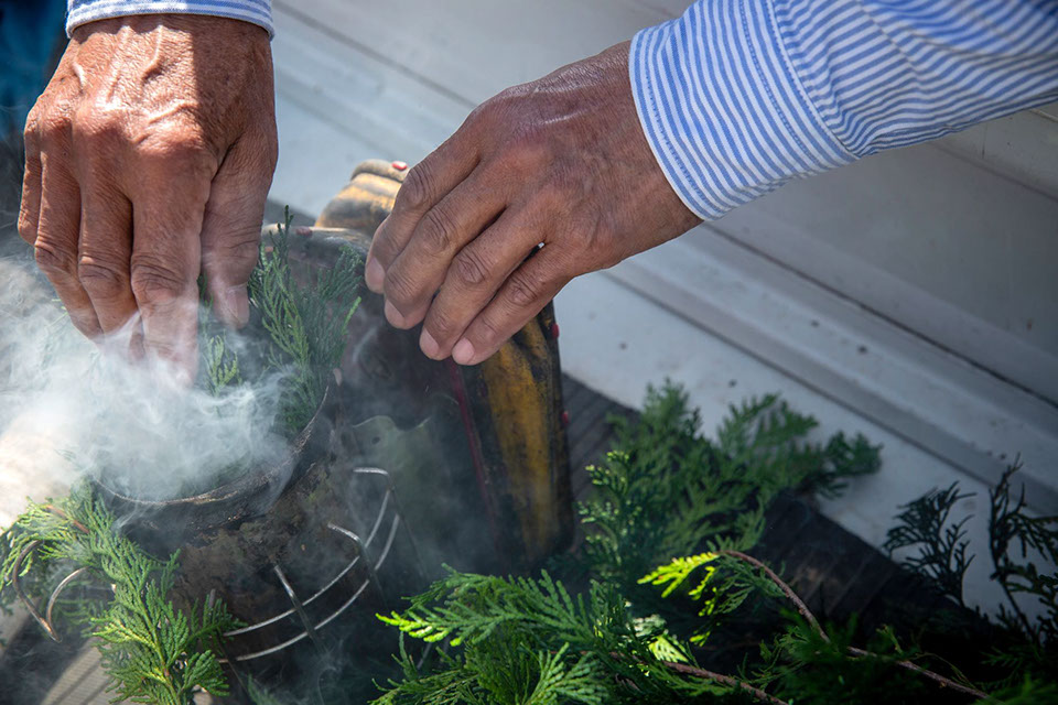 「2箱から始めて、15年になりますかね。最初、近所のアマチュアの養蜂家に『やってみたら』と蜂を貰ったんです。後で(蜂を)増やして返しましたけどね。今では(養蜂の)先輩たちにダニ駆除の方法なんかを教える立場になりました。13年前からここで蜂蜜を売るようにしたんです。そうなると山道をここまで買いに来てくれたお客さんに申し訳ないような気になって、4年前からCafeを始めたんです。それまでは山の水を飲料水に使っていたんですけど水道がきましたので、飲食店を始められるようになったんで……、土日だけですけどね」