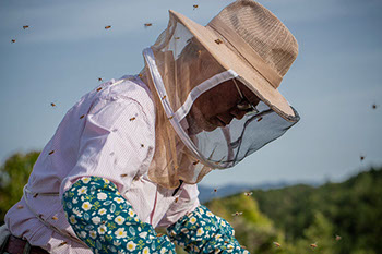 「2箱から始めて、15年になりますかね。最初、近所のアマチュアの養蜂家に『やってみたら』と蜂を貰ったんです。後で(蜂を)増やして返しましたけどね。今では(養蜂の)先輩たちにダニ駆除の方法なんかを教える立場になりました。13年前からここで蜂蜜を売るようにしたんです。そうなると山道をここまで買いに来てくれたお客さんに申し訳ないような気になって、4年前からCafeを始めたんです。それまでは山の水を飲料水に使っていたんですけど水道がきましたので、飲食店を始められるようになったんで……、土日だけですけどね」