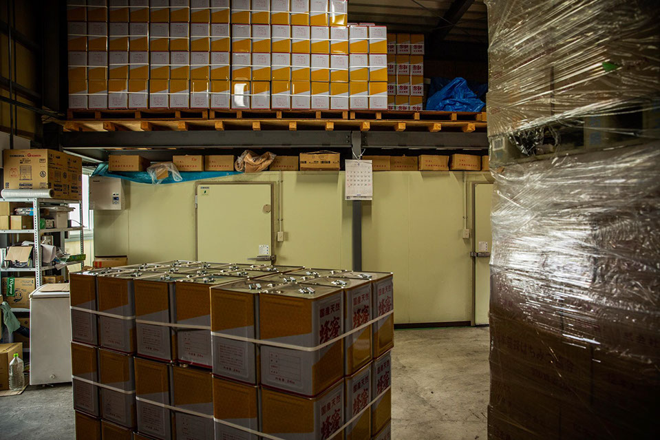 販売店近くの倉庫内には蜂蜜をストックするための大きな冷蔵庫が備えてある
