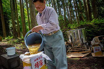 健一さんが言うように霧滝蜂場の蜂は確かに温和しい。その背景には長い年月を掛けて蜂の品種を改良し維持してきた努力があったのだ。