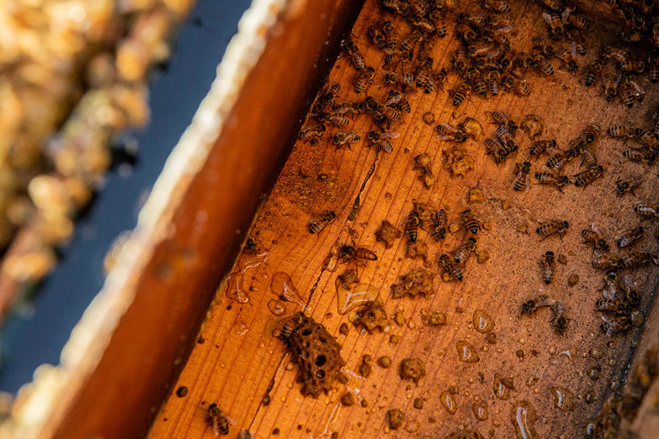 六川さんは、裕一さんにとって単に弟子というより、存在自体が励みとなっているのだろう。「僕が(養蜂を)始めた頃と比べ、最近の方が蜜蜂に関心を持ってくれている感じはしますね」と、裕一さんが言ったことがある。その言葉は、健康志向に傾く社会の潮流の中で、蜂蜜への関心が高まり、養蜂家に対する世間の評価が変化していることの表れだろう。養蜂家の仕事は、他人が気軽に見学させてもらうことが難しい現場であるため、その実態がなかなか伝わらない。そんな中、六川さんのように蜜蜂に関心を示す人物が現れ、移虫に駆けつけた藤田嘉秀さんや店舗の前で「今、14群やっている」と立ち話しをしていたアマチュア養蜂家の関谷五郎(せきや ごろう)さん(75)など、裕一さんを頼って蜜蜂に関心を寄せる人たちの存在が、彼を励ましているようだ。蜜蜂という健気な生き物の魅力はもちろんだが、裕一さんの実直な人柄の魅力が、人びとを養蜂の世界へ引き寄せているのだと思った。
