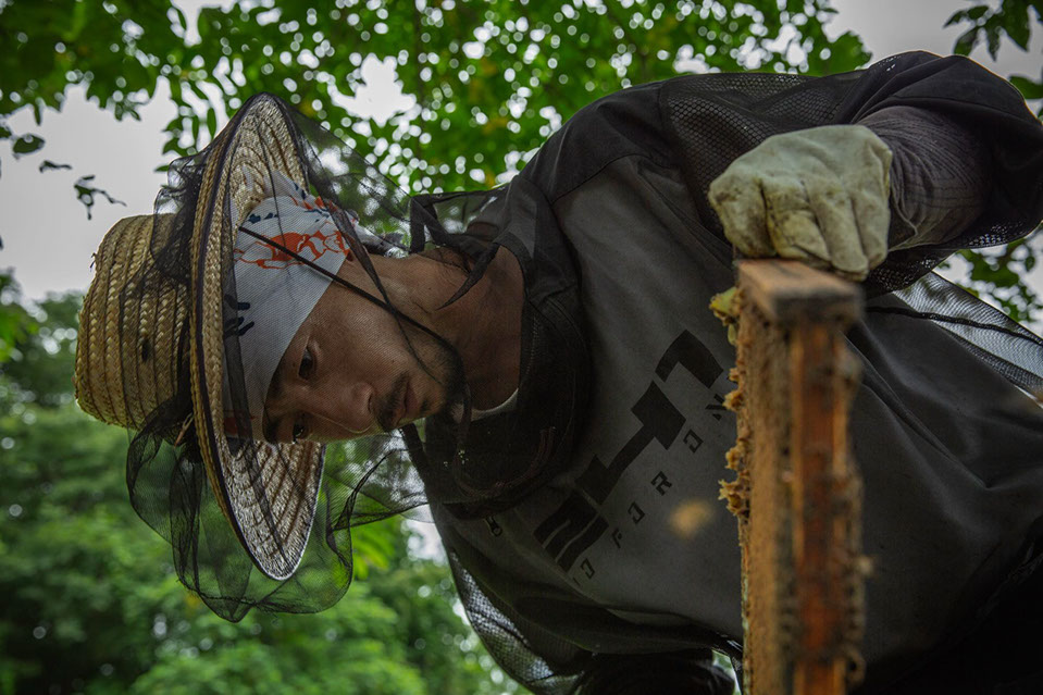 「春から頑張ってきたんで、今になって成果が出てきているって感じですね。ダニを見ない巣箱が増えてきているんですよね。農薬の問題にしても、農家に農薬を使うのをやめろと言える立場の職業は、養蜂家ぐらいじゃないですか。そういう社会的役割が養蜂家にはあるんじゃないですかね。モロコシの農薬で蜜蜂がみんなやられちゃって……。もう分かっているから近くには巣箱を置かないんですけど、ネオニコチノイド系農薬なんで、蜂が狂ったように死んでいくんですよ」