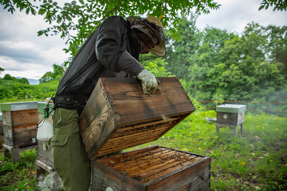 「僕、ちっちゃい時からプロのスノーボーダーになりたくてずっとやってきたので、一生、冬はスノーボードができれば良いという感じなんです。だから夏の仕事は養蜂以外に、打ち上げ花火従事者資格も持っているんです。地元の野尻湖の花火大会は行って打ち上げるんです。花火の仲間も『蜂蜜持って来い』って言ってくれて、蜂蜜買ってくれるんで……。今年は去年の1.2倍くらいの蜂蜜が採れたんで、売り先を少し考えないとなと思っているんですよ」。豪さんの嬉しい悩みだ。