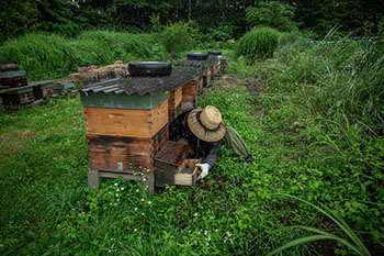 「ここの蜂場ではビーポーレン(花粉団子)を採っているんです。ビーポーレンには350種(※)以上のミネラルやビタミン、酵素などの栄養成分が含まれているためパーフェクトフードと言われていて、ヨーロッパではビーポーレンが一般的に売られているんですよ」(※:花粉団子に含まれる栄養成分の種類や数には諸説あります)