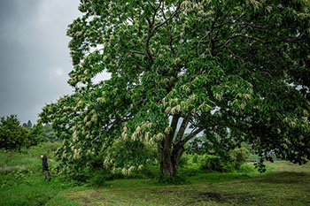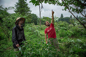 午後3時半を過ぎていた。今にも降り出しそうな空模様だ。この日、豪さんが最後に行ったのはスペイン人のフルヤン サンレイさん(47)が経営する農園の一角に巣箱を並べた蜂場だった。