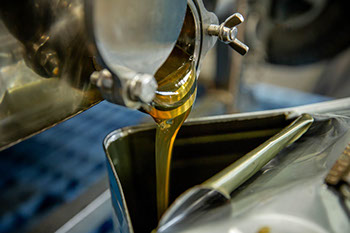 遠心分離機から搾ったばかりの蜂蜜が流れ出る