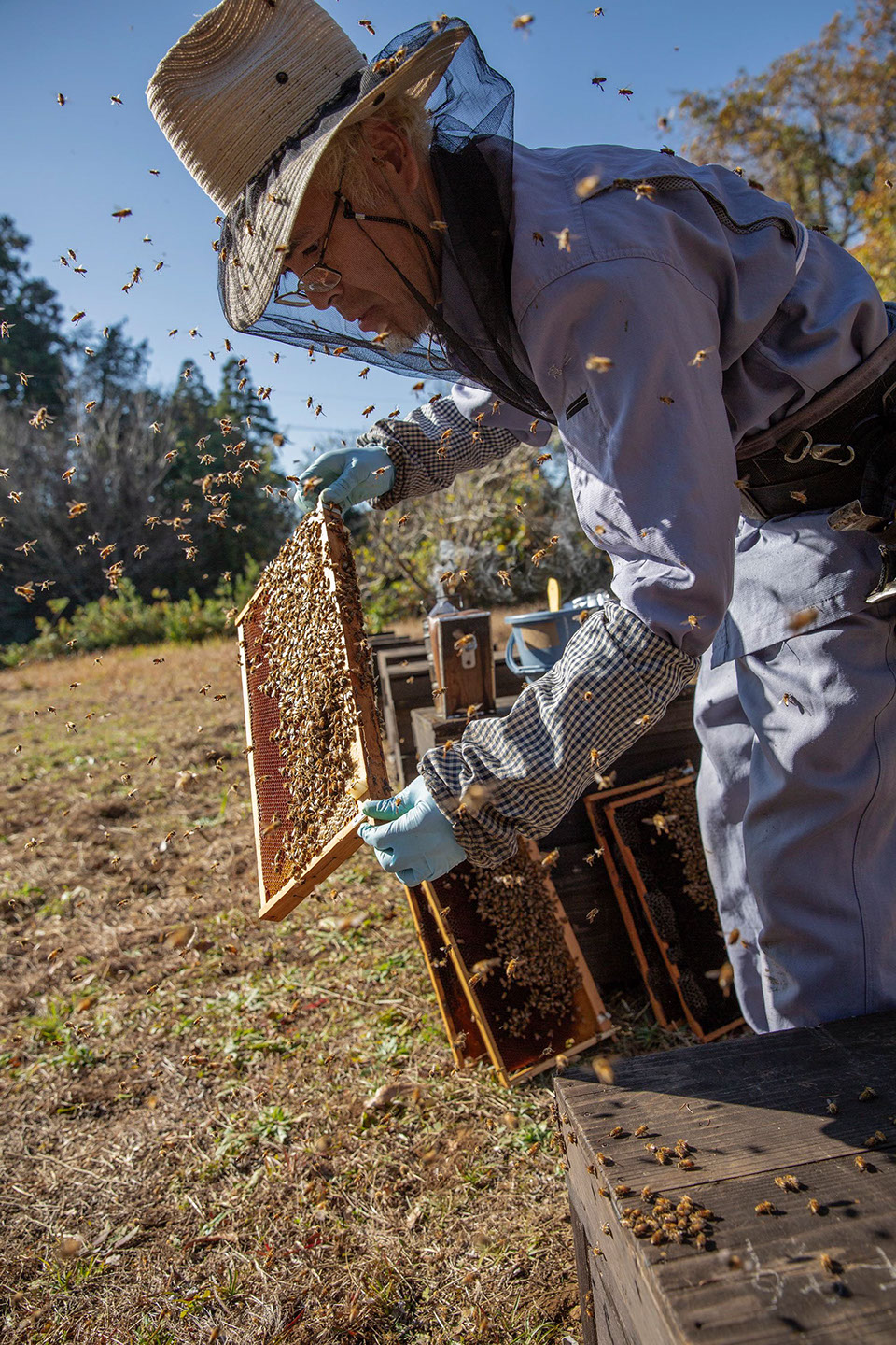 継ぎ箱を外して巣板を減らし、蜂の密度を高めて越冬に備える