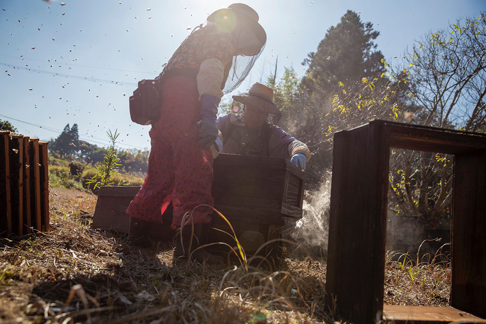 「(運送屋の)エルフを帰すので」と、利憲さんが巣箱を軽トラックに移し替えている理由を説明してくれる。運送屋の4トントラックを空荷で青森まで帰す訳にはいかない。こちらで荷物を積み込む時間が迫っていたのだ。