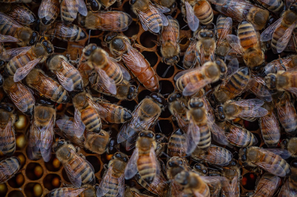 「私が50歳手前の頃やったろな。クリーニング業をやっていたんですが、私の姉の親戚が養蜂を共同経営でやっておって、梅畑で交配しよる時に『1日1万円出すから手伝え』と言われて行ったら、ネットは被っとったんやけど、『振れ』と言われて足下に蜂を振ったら、刺される刺される。それでも一か月に2、3回は手伝いに行ってたんやけど、1年後には他の従業員が皆辞めてしもて、自分だけになってしもて……。毎日のように行くようになって、そのうち共同経営の方がおかしくなってしまって姉の親戚が養蜂を止めたんですよ。蜂だけが残ってしもうて、可哀想だから私が時々世話しよったんやけど、以前に搾った蜂蜜が一斗缶に残っとったから、それを売ったら売れたもんやから、道具は残っとったんでその気になったんやけど、その時にはもう蜂がいなくなってしまって、岐阜県から新しく15群ぐらい蜂を買って始めたんです。