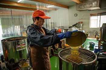 「今年は例年より少なくて全体で600群弱ですかね。社長を含めて4つの班で動かしています。花の咲き具合が毎年ちょっとずつ違っていて、なかなか読めなくて……。班の体制が始まってから今年で3年目。渋川の利根川でしっかり採って、片品川でも採るというのが私たちの班の使命ですね。アカシア蜜がなければ、うちの養蜂は成り立たないですから……。春の採蜜をしっかりやって、秋の越冬対策でいかに上手く蜂を増やしていけるかが養蜂の技術だと思っていますから……」