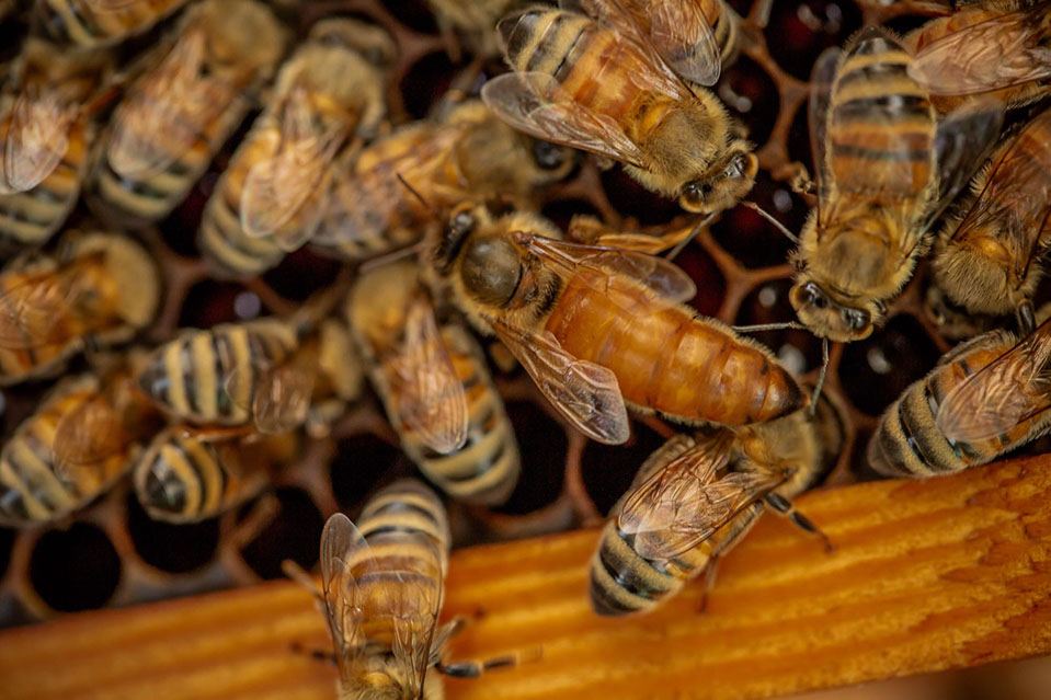 全面に蜜蓋が掛かった蜜巣板。越冬の餌となる