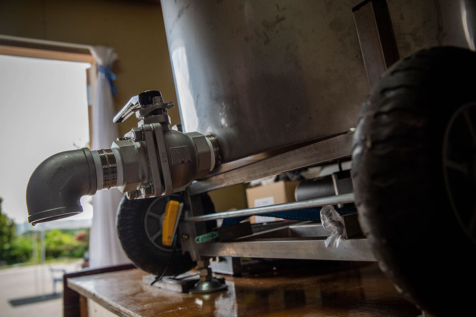 遠心分離機の蜜の排出パイプのコックは簗場さんの自作