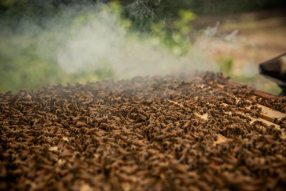 この日、午後から何群の内検ができただろうか。簗場さんの内検は、テキパキというよりじっくり蜜蜂群の様子を観察しながら進めるやり方だ。翌日も簗場さんが内検を続ける近くで、その様子を見せてもらった。