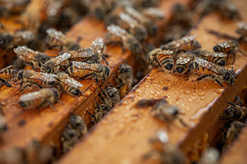 BKC液を掛けられてびしょ濡れになった蜂たち