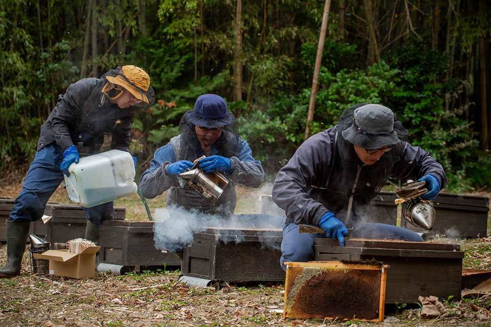 「もともと生き物が好きだったし生態にも興味があったんですけど、養蜂の世界に入ってみて採れる蜜の量がすごかったのと、季節によって異なる花の蜜が採れるというのも新鮮でした。それに、ちょっとした工夫で採れる蜜の量が増えたり、蜂が活き活きするのは面白いですね。ぼくは仕事のついでに色々な生き物を探してみたりしているんで、養蜂の仕事を楽しんでいますね。魚と昆虫が好きというのがあるんで、ここで働く前は琵琶湖のアユの養殖をしたり、和歌山の水族館の手伝いに行ったり、それに熱帯魚のお店で働いていたこともありました」