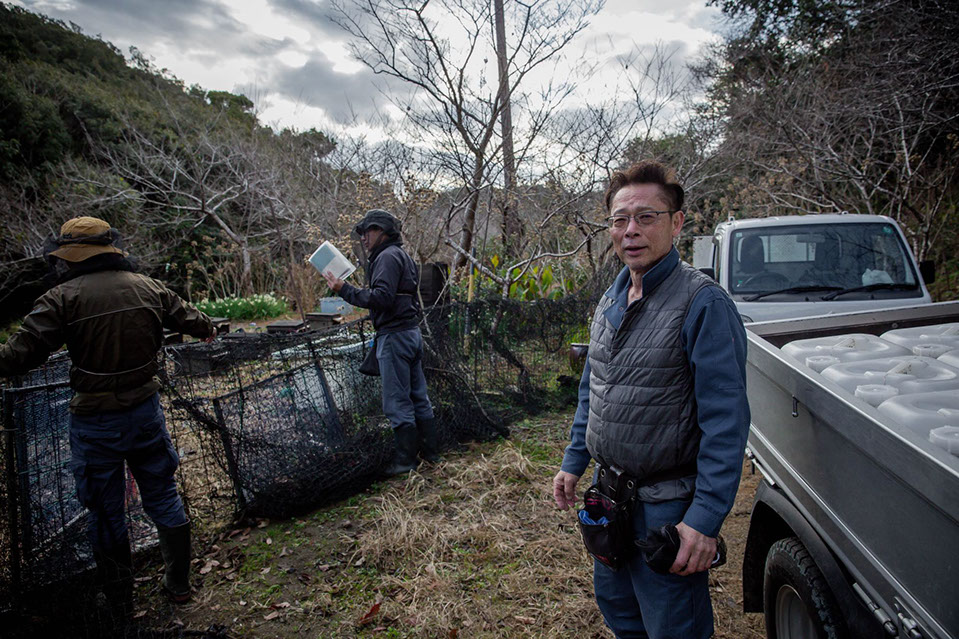事務所で蜜蜂群の大きな年間の流れについて聞いた後、午前中は桑名市内の加藤蜂場と午後は山村蜂場で、2月10日に売り蜂を80群出荷するための準備だ。