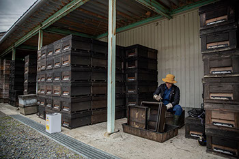 「養蜂の仕事で、人間にできる事って2割やと思っているんです。残りの8割は蜂であり、花であり、気温であり、天候であり、これは人間が統制できないんやで……。それで子どもや従業員には、人間の都合で仕事はするなよ。絶対、蜂が教えてくれるんやからなと言うんです。それと私は、メモ書きはとらない。メモをとると、どうしても翌年はそれに従ってしまいますので、蜂の今の姿を見えなくしてしまうように思うんですよね」