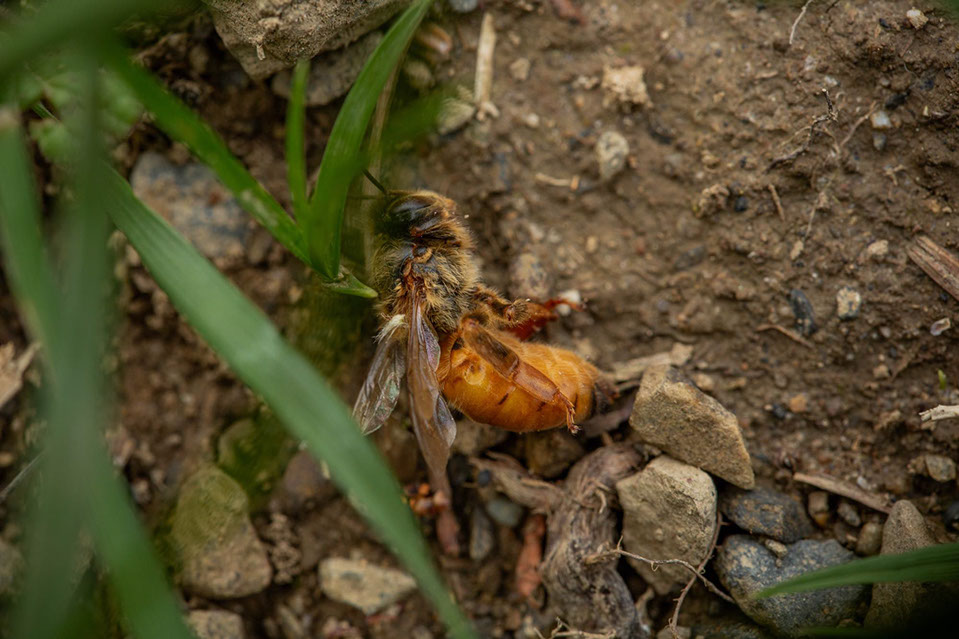 未交尾の女王蜂が産まれた群に旧女王蜂が居ることが分かった。可哀想だが旧女王蜂は潰してしまわないと分封することになる