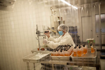この日、夕方から木村さんが蜂蜜をパウチに充填すると連絡があり、京北の工場へ向かった。ヘアキャップを着け、白衣を着て工場に入る。パウチに蜂蜜を充填するノズルは企業秘密なので、近接撮影はできないとのことだ。天井から垂らしたビニールシート越しに撮影をしていると、充填作業をしながら木村さんが話を始めた。