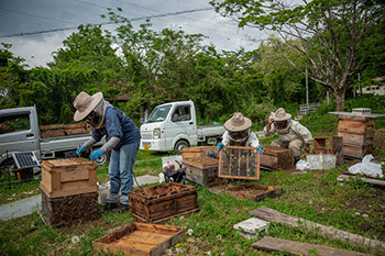 橋詰さんと富岡さんは地元で生まれ育っている。しかし、有限会社きたもっくで働く社員約100人の多くは都市部からの移住者だという。打合せの時に橋詰さんが「生態系みたいに複雑」と言っていた組織は、縦型組織で経済合理性を求める働き方とは異なる人生観を持つ人びとの受け皿になっているようだ。「自然資源を価値に変える」をコンセプトに地元企業が目指す持続可能な自給経済圏を確立するための一翼を担う養蜂チームが果たす役割は大きい。