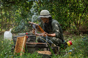 簡単に言ってもらっても、私には雲を掴むような話だ。大学院を卒業する際は当然ながら農業分野で就職先を探したが、就職先を探す中で農業と養蜂の繋がりが視野に入ってきたことで、関心が養蜂にも広がることになる。偶々、時代がコロナ禍の真っ只中。ほとんどの求人先がネットでの面接だった中で、唯一対面で面接をしていたのが長坂養蜂場だった。「静岡まで行ってみようかな」と思い立って、面接を受けて「養蜂家になれますか」と社長に質問し、内定をもらったのだ。黒澤さんは長坂養蜂場に入社した後、集中して養蜂を学ぶために昨年6月から10月までの4か月間、熊本の西岡養蜂園で集中して修業してきた。昨年退社した先輩が修業していたのと同じ養蜂場である。