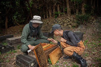 「ここに来て1年過ぎてから素手で作業するようになりました。昨年退職した先輩が素手で作業をやっていたのと、昨年集中的に修業させてもらった西岡養蜂園でも素手で作業をしていましたので……。素手で触って分かることも沢山あるし、蜂も健康になると言いますからね。蜂が健康になると聞けば、良いかなと思えますよね。蜜蜂基点というか、原点に戻るということです。『ゴールイメージに立ち返りましょう』というのがクレド(企業の行動規範)にもありますよね」