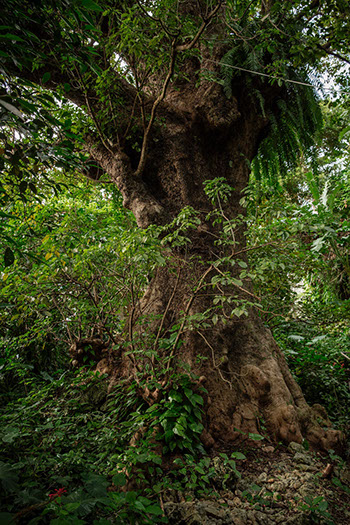 初代の盛弘さんが故郷である金城町に戻り家を建て、養蜂を続けた本当の理由を知る由もない。しかし、戦禍から免れ、鬱蒼とした内金城獄境内に佇んでいると、推定樹齢200年余の大アカギ群の存在や拝所の神聖さが保たれていることが、故郷に戻る動機の一つだったのではと思えてきた。