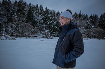 大室蜂場を案内してくれた髙橋敦志さん。春先に、この蜂場から採蜜が始まる