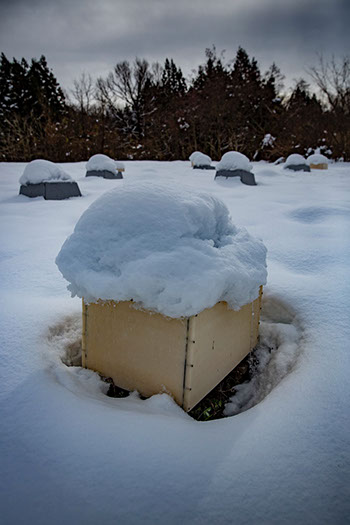 巣箱が雪に埋もれた小栗山蜂場は「八米」発祥の蜂場