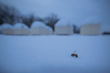 好奇心が旺盛だったのか、生理的な欲求だったのか、巣箱を飛び出した蜂が寒さで飛べなくなり雪の上に