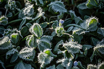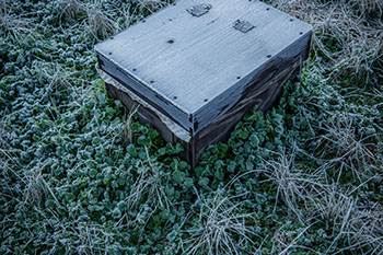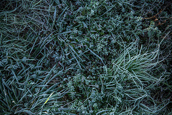 コンクリートの壁と用水路に挟まれ、轍の残る農道に踏み込んだ途端、足下がふわっと白い真綿に包まれたような感覚に襲われた。霜だ。3月中旬にしては強い冷え込みの朝だった。その霜の降りた農道を40メートルほど進むと、目の前が明るく開け、幻想的な乳白色に輝く光景が広がった。僅かに段差のある冬の棚田が遠くまで広がり、緩やかに蛇行する田んぼ道が奥へと伸びている。足下のシロツメグサの葉は縁取りするように霜が付き、木立を抜けて射し込む朝日に照らし出されて白く輝いている。